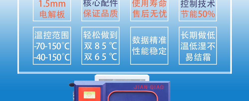 產(chǎn)品型號:JQTH-225L 品牌:劍 喬 用途:新款恒溫恒濕試驗(yàn)箱(JQTH-225L),主要用來測試各種材料耐熱、耐寒、耐干、耐濕的性能。本機(jī)采用中英俄文顯示彩色觸控式屏幕畫面,操作簡單,程序編輯容易可顯示完整的系統(tǒng)操作狀況咨詢熱線:13829135130